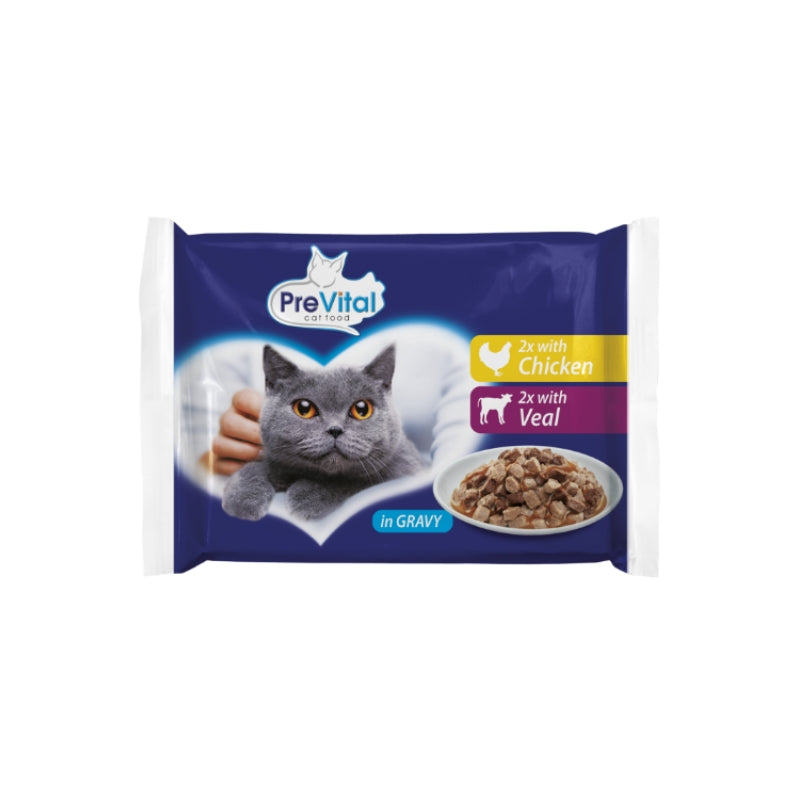 PreVital vlažna hrana za mace 1+ godina 4x100g – multipack (piletina i teletina) u sosu