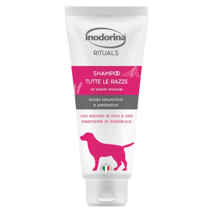 Inodorina Rituals Tutte le Razze je kvalitetan šampon namenjen svim rasama pasa. Njegova blaga formula efikasno čisti dlaku i kožu, a istovremeno pomaže u održavanju prirodne ravnoteže kože.