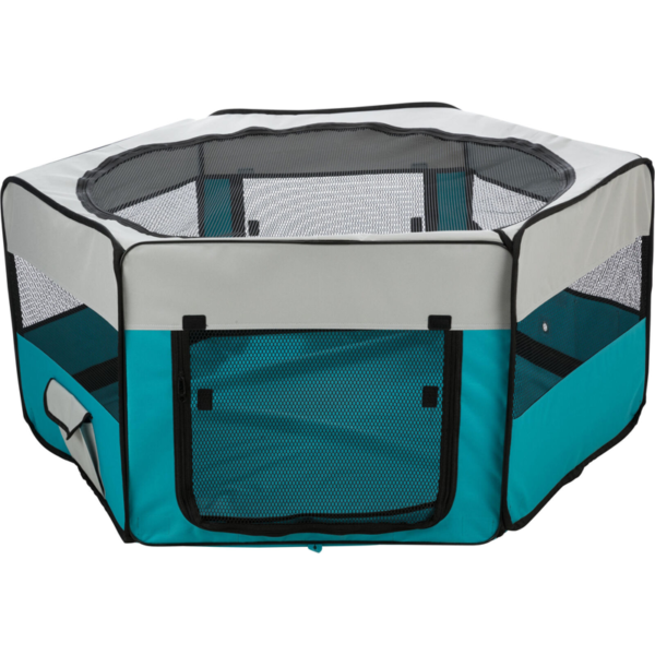 Trixie platnena ogradica pruža siguran prostor za štence ili male pse, bilo u kući ili na otvorenom. Lagana i prenosiva, izrađena je od izdržljivog platna sa mrežastim panelima koji omogućavaju dobru ventilaciju i pregled. Prečnik od 130 cm daje dovoljno prostora za igru, a visina od 55 cm sprečava neželjeni izlazak. Može se lako sklopiti i poneti zahvaljujući torbi za transport.