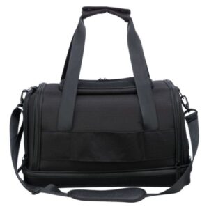 Torba se može otvoriti sa strane, gore i dole, a spoljašnji džep omogućava praktično odlaganje sitnica. Dolazi sa dvema ručkama i remenom koji se može skinuti, dok integrisani kratki povodac osigurava ljubimca tokom transporta.